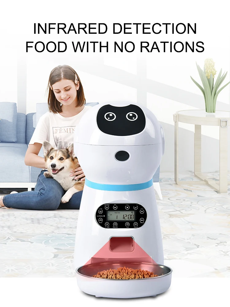 Intelligent Pet Feeder AI Automatic Cat Food Storage Box Creative Robot Dog Feeder Pet Controllable Food Dispenser Voice Call